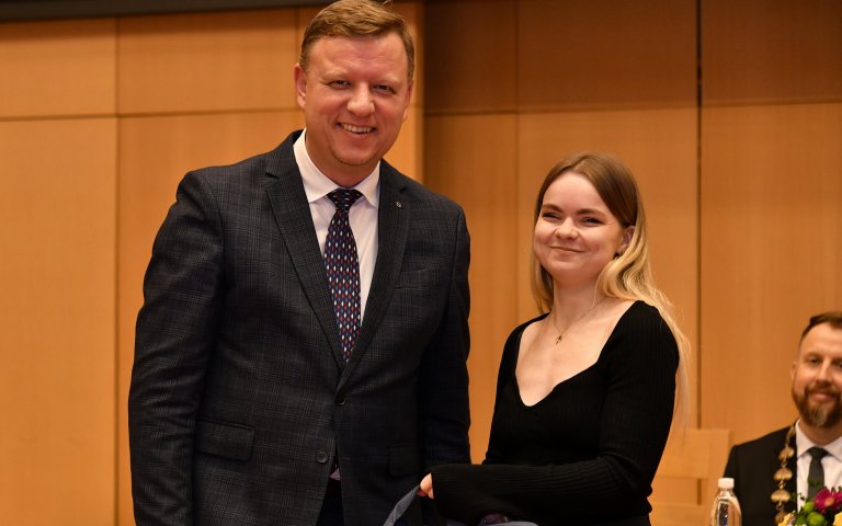 Studující, absolventky i zaměstnanci Fakulty umění a designu UJEP si převzali ocenění z rukou rektora, či jednorázová stipendia za jejich tvůrčí činnost, která má dopad na blízký region. Všem gratulujeme!