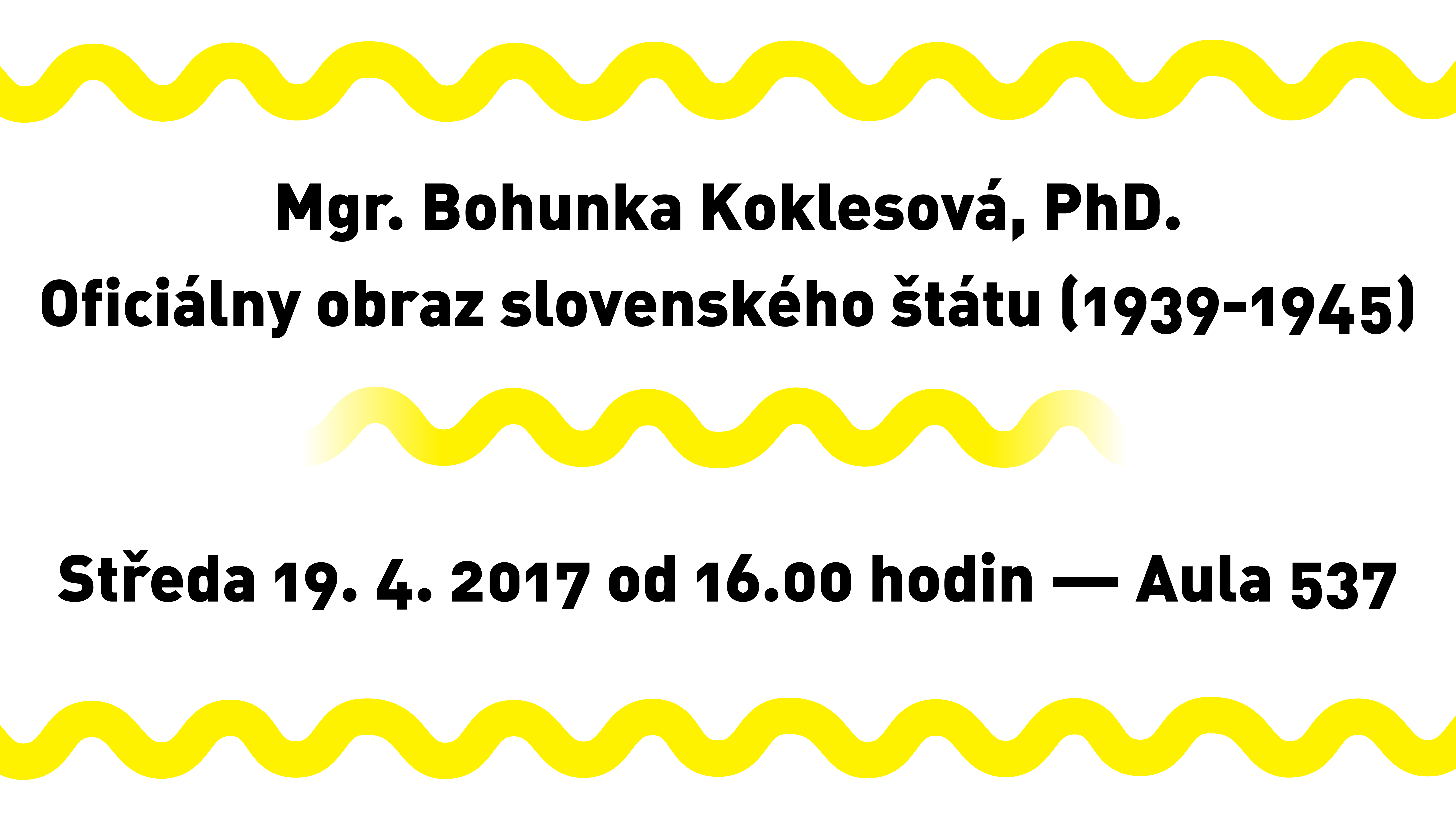 Slovenský štát býva nazývaný fašistický, klérofašistický, totalitný, či autoritatívny. Všetky tieto charakteristiky čiastočne pomenúvajú jeho základné politicko-ideologické východiská a postoje. V úvode prednášky sa bližšie pozrieme na propagandistické zámery a ciele, zásadné obsahy oficiálnej vizuálnej rétoriky slovenského štátu. Cieľom prednášky však nebude len ich analýza, ale ukážeme si ako prostredníctvom historických fotografií (plakátov, umenia) „vymedzujeme našu prítomnosť voči znepokojujúcej minulosti“.