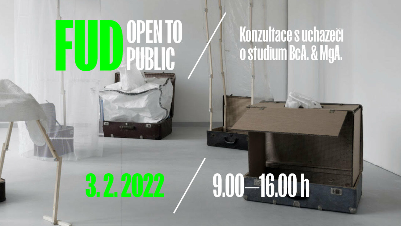 FUD otevírá své dveře pro uchazeče o studium. Dne 3. února od 9 do 16 hodin jsou pro veřejnost přístupné všechny ateliéry Fakulty umění a designu. Zde se můžete setkat s pedagogy i studenty a zjistit více o tom, jak probíhá výuka a jaké je zaměření jednotlivých ateliérů. Také se můžete dozvědět více informací o průběhu přijímacího řízení a domluvit si individuální konzultaci svých prací s vedoucím nebo asistentem ateliéru. Den otevřených dveří probíhá v rámci výstavy klauzurních prací Zimní sklizeň. Máte-li zájem o studium Kurátorských studií, bude vám k dispozici garant tohoto studijního oboru, prof. Mgr. Michal Koleček, Ph.D., a to v čase 10–15 hodin v místnosti č. 232 v 1. patře.